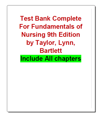 Test Bank For Fundamentals of Nursing 9th Edition
